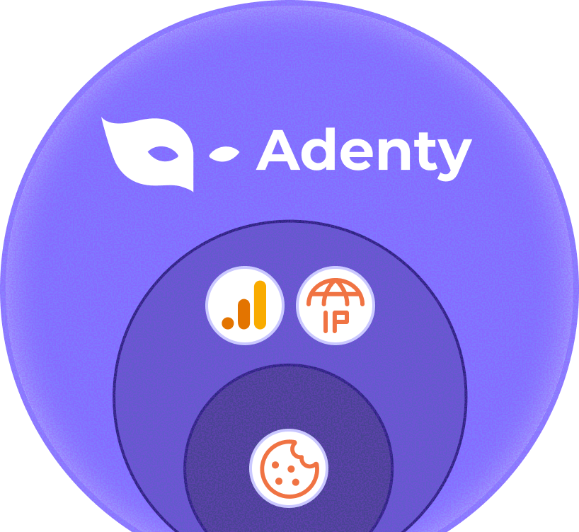 The majority of web analytics tools fail to recognize returning visitors if they use anonymization tactics, such as VPNs, incognito mode, privacy-focused browsers, or cleared/blocked browser storage. Adenty ensures 99% accurate visitor recognition under these conditions, resulting in uninterrupted visitor tracking and accurate data profile building.