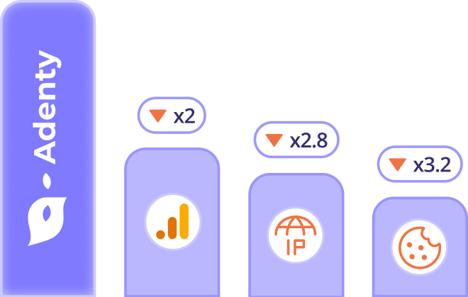 New visitors explore, returning ones convert. Yet most analytics lose track when visitors come back. Adenty reveals them with superior 99% precision, unlocking more of your engaged audience – just compare.